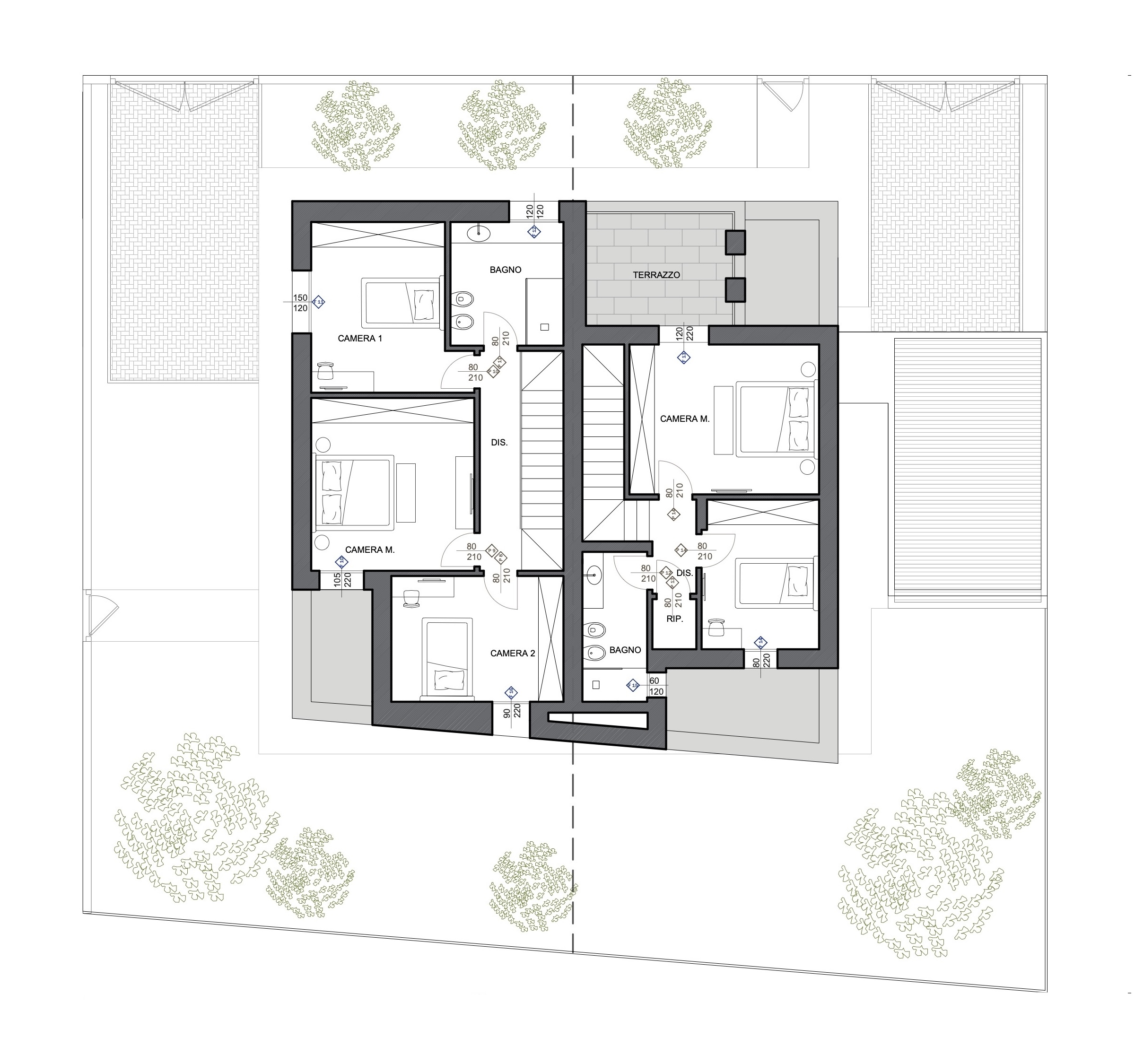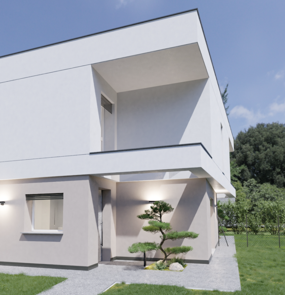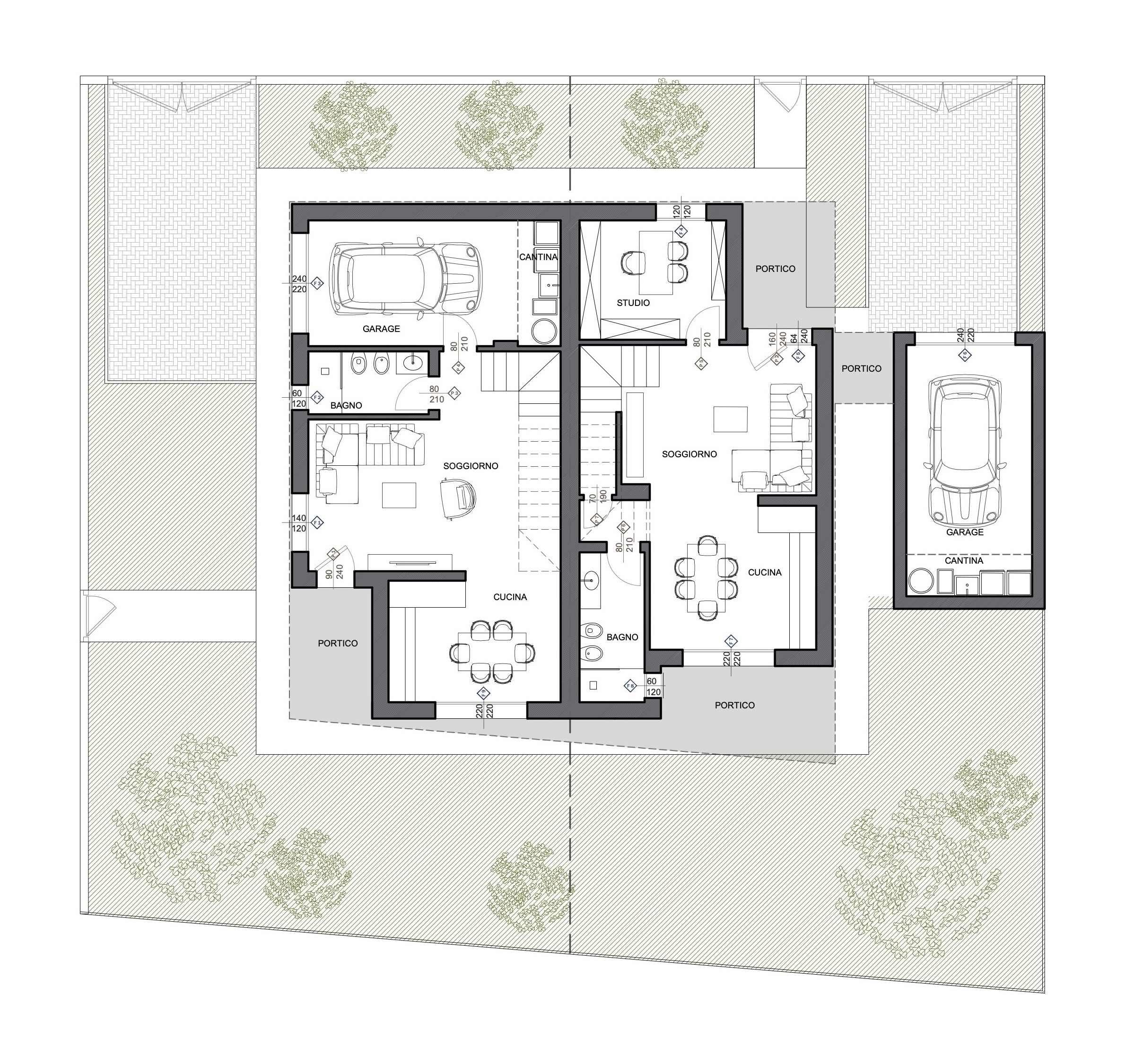 La Villa Bifamiliare ha due soluzioni entrambe con ingresso indipendente e giardino privato.